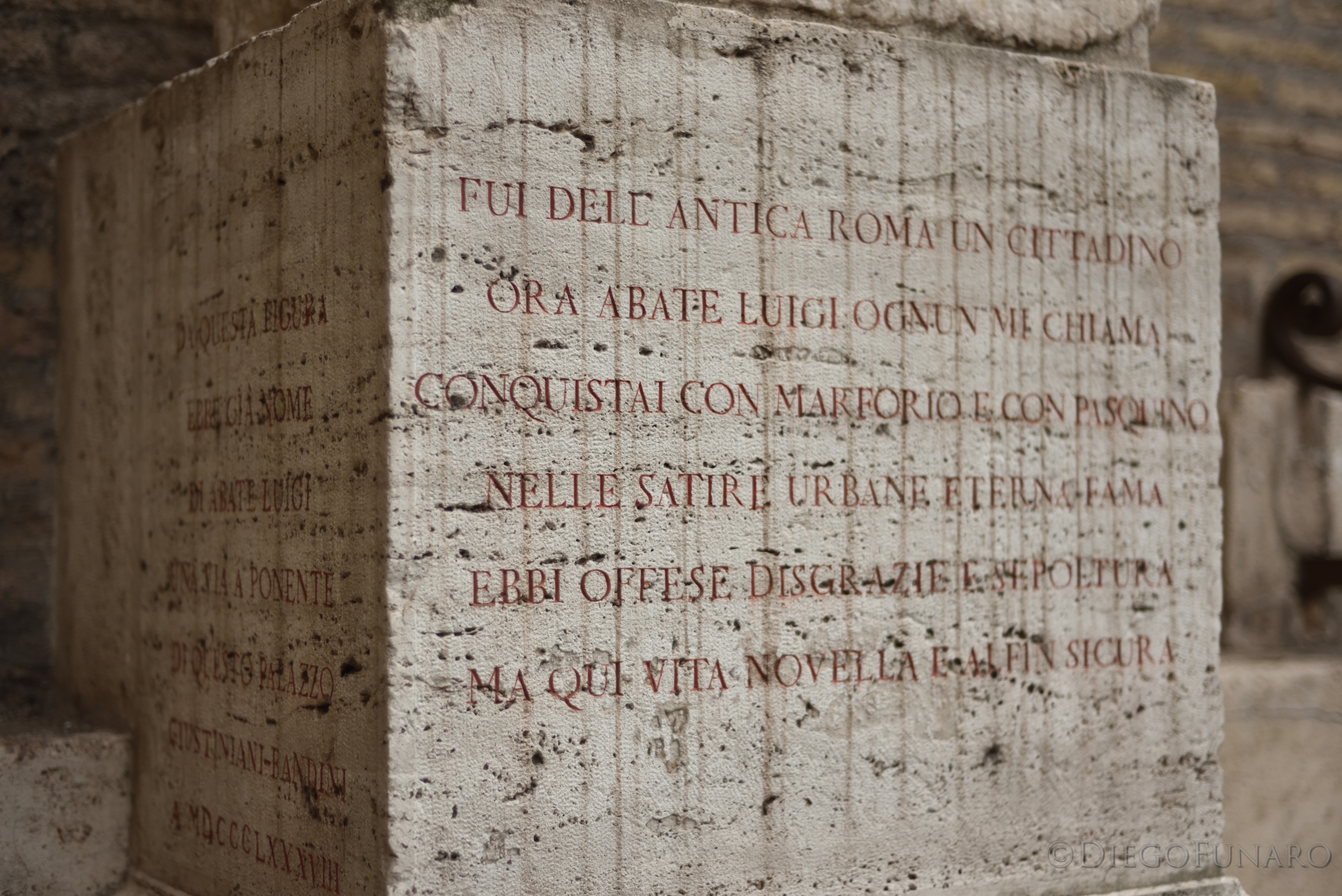 L’Abbate Luiggi è l’unica tra le statue parlanti romane ad avere un piedistallo che ne racconta brevemente la storia