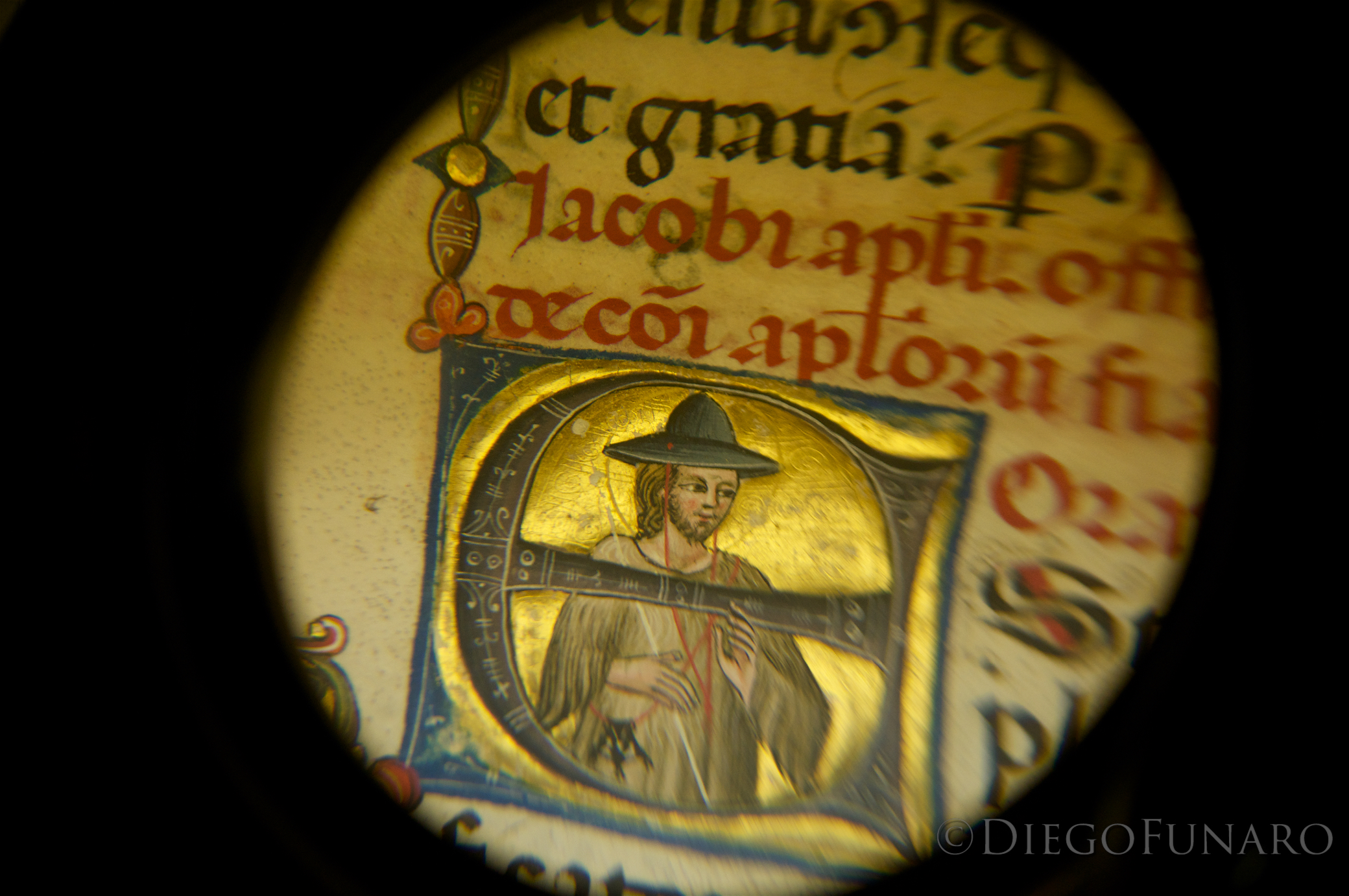 Il dettaglio della miniatura di un antico libro conservato nella biblioteca del monastero di Santa Scolastica